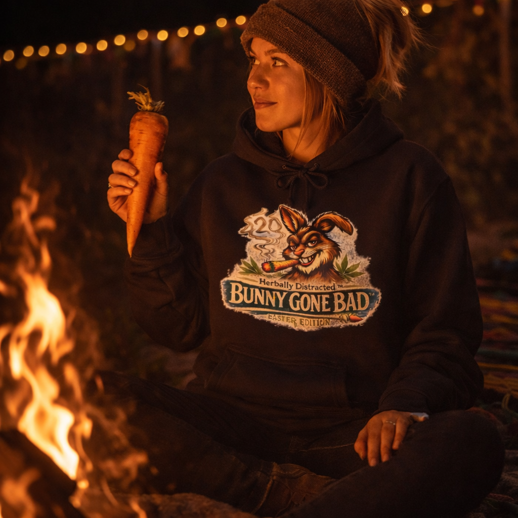 A little naughty and a lot funny — the Bunny Gone Bad™ 420 Easter Edition tee brings spring vibes with a rebellious twist. Featuring the Herbally Distracted bunny enjoying a carrot “treat,” this soft graphic shirt is perfect for festivals, 420 celebrations, and anyone who likes their Easter with a sense of humor.