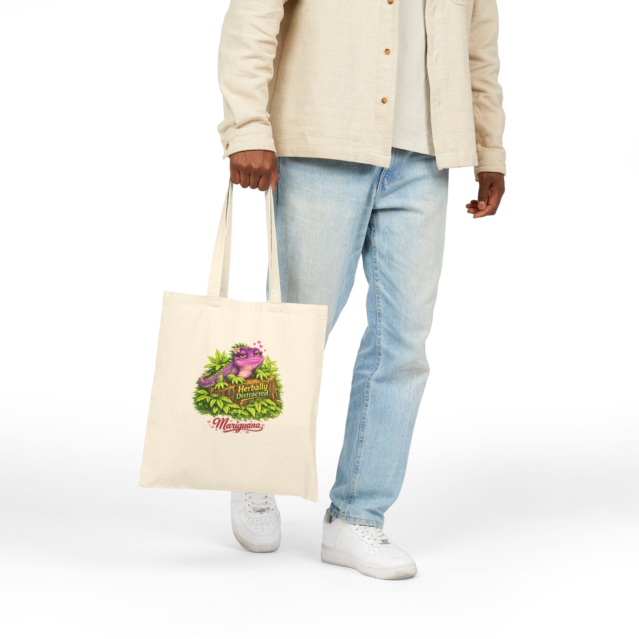 A sturdy cotton canvas tote that brings a playful, botanical energy to everyday errands. The natural heavy-weight fabric holds its shape and carries groceries, books, and market finds with calm confidence. A bright, whimsical herbal-themed illustration sits on the front — a little splash of color among leaves and blooms that reads like a tiny traveling garden. Long self-fabric handles and reinforced stitching mean you sling it over a shoulder and keep moving. It’s the kind of bag that quietly announces you care about craft, sustainability, and small joyful details.